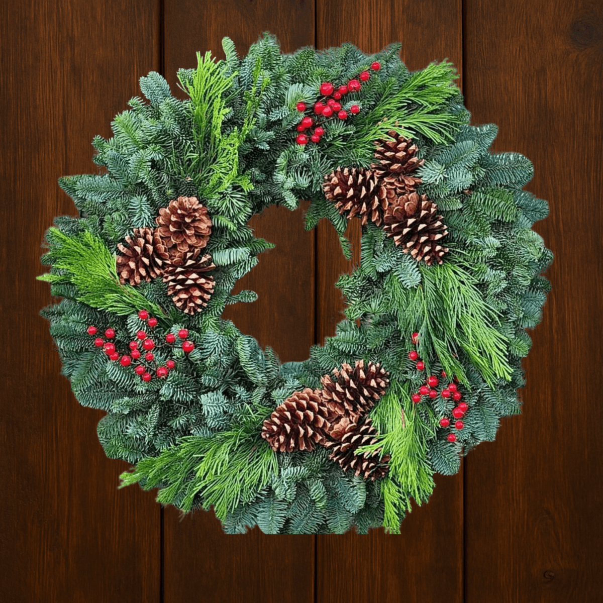 The Merry Berry Fresh Christmas Wreath — Made in the Pacific Northwest The Merry Berry wreath brings together the charm of traditional holiday greenery with a bright, festive touch. Crafted...